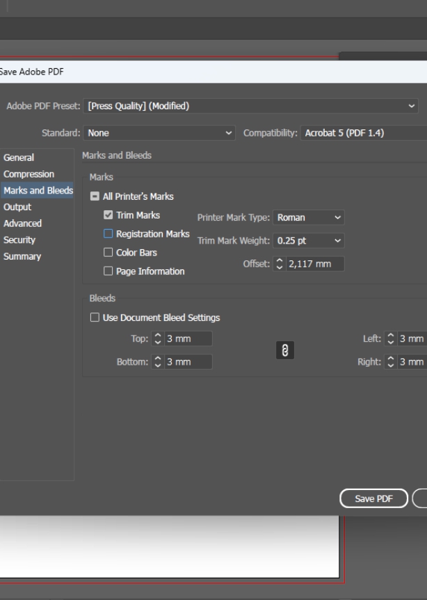 - Datoteki dodajte oznake za porezavo (paserje), ki označujejo končni format tiskovine.